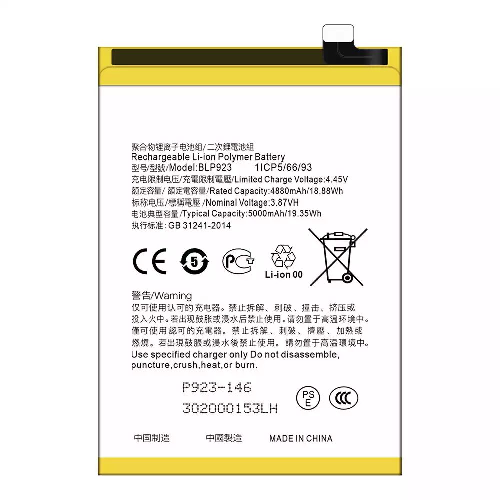 Pametni telefon Baterija BLP923 za OPPO A57 2020 /A57 2022 /A77 /A77s /A78/A97/ K10 / OnePlus Nord N20 SE /OnePlus Nord N300 5G /Realme C51