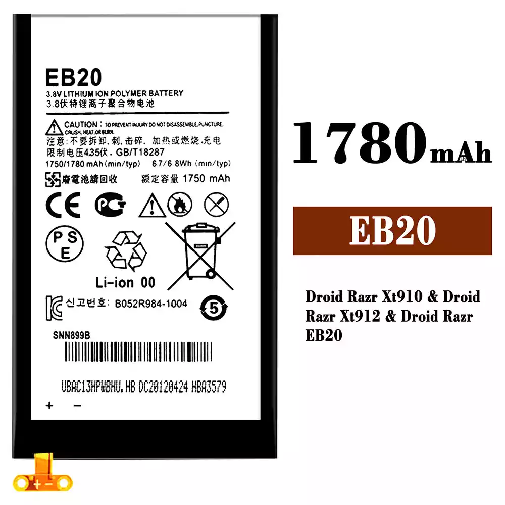 Pametni telefon Baterija EB20 za Motorola Droid Razr Xt910 / Droid Razr Xt912 / Droid Razr EB20