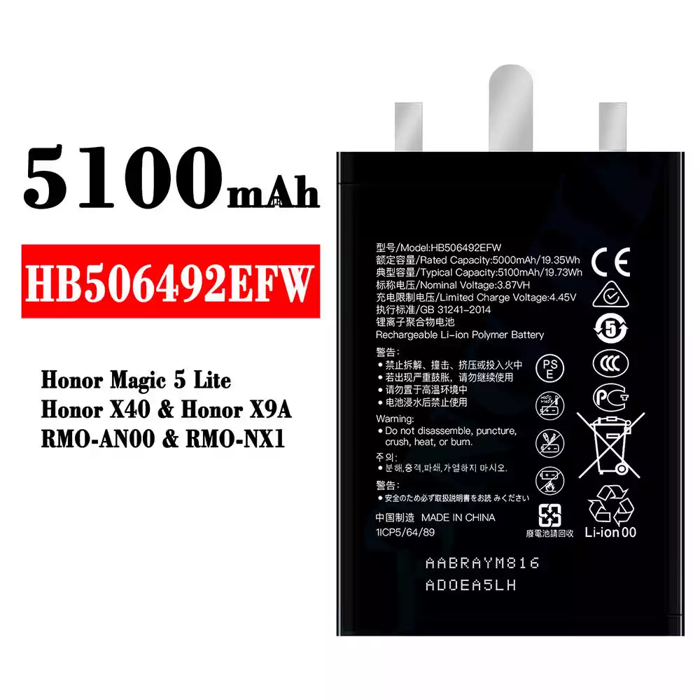Baterija HB506492EFW za HUAWEI Honor Magic 5 Lite / Honor X40 / Honor X9A / RMO-AN00 / RMO-NX1